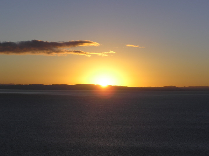 A thin line of orange and red appears along the water. Then it intensifies, brighter and brighter, and you see the brightness focusing more and more on the center of the line, until the flaming ball surges up out of the water. And then you watch it rise up, and in a sense it brings that whole red line on the rim of the water up into the air as though the sun had wings.