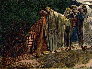 Now, one commentator said: “Well, evidently what happened here is somebody fell in the front and…” See. That’s a typical line, oh, that’s a typical line. It goes along with the ones who said Peter didn’t walk on water there was a sand bar. And you know, all of that. Typical. Jesus said “I am” and the whole pile went down just like that. Now they were soldiers, they aren’t stupid. They weren’t standing one inch behind each other. They were in some kind of formation. They knew what they were doing. They fell down because of the power of His word. All He had to do was say His name, the name of God, and they collapsed on the spot. There He is one, single unarmed lonely figure and they are an army, equipped and manned for war and He simply speaks His name and they collapsed. Now you tell me whose got the power.