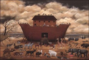 Later in Genesis 6, we read that Noah was righteous and walked with God. But this happens after he finds favor or grace with God. In Exodus 33:18 Moses pleads with God, “Show me thy glory!” And God answers, “I will make all my goodness pass before you and will proclaim before you my name, YAHWEH! and I will be gracious to whom I will be gracious, and will show mercy to whom I will show mercy.” So Noah and his family were rescued from the coming flood, but not because of his righteousness but because of God’s grace. Noah was far from perfect. In fact, in tomorrow’s reading, we will see that even after God rescues his whole family and makes a covenant with him, Noah plants a vineyard and got drunk and naked. You see, we all need grace!
