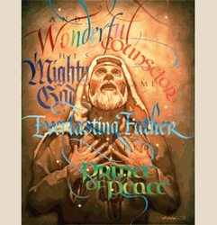 In a first of its kind painting, The Promise combines the incredible talents of artist, Ron DiCianni and calligrapher, Tim Botts. With Isaiah in the background, viewers can see the awe in Isaiah’s face as he prophesied of the Savior that was to come. The names in the foreground are brilliantly colored to emphasize the importance of the name of Christ. More than just a Christmas painting, The Promise reminds us that our Savior is everything from our “Everlasting Father” to our “Prince of Peace.””